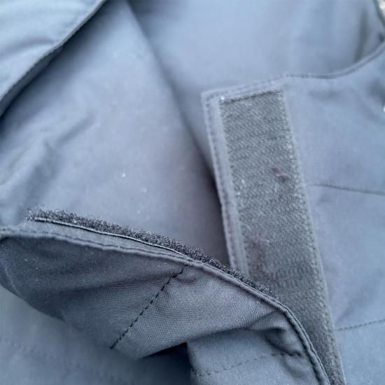 両肩部分、両脇部分に付く面ファスナー、フック側のテープ幅が違います。